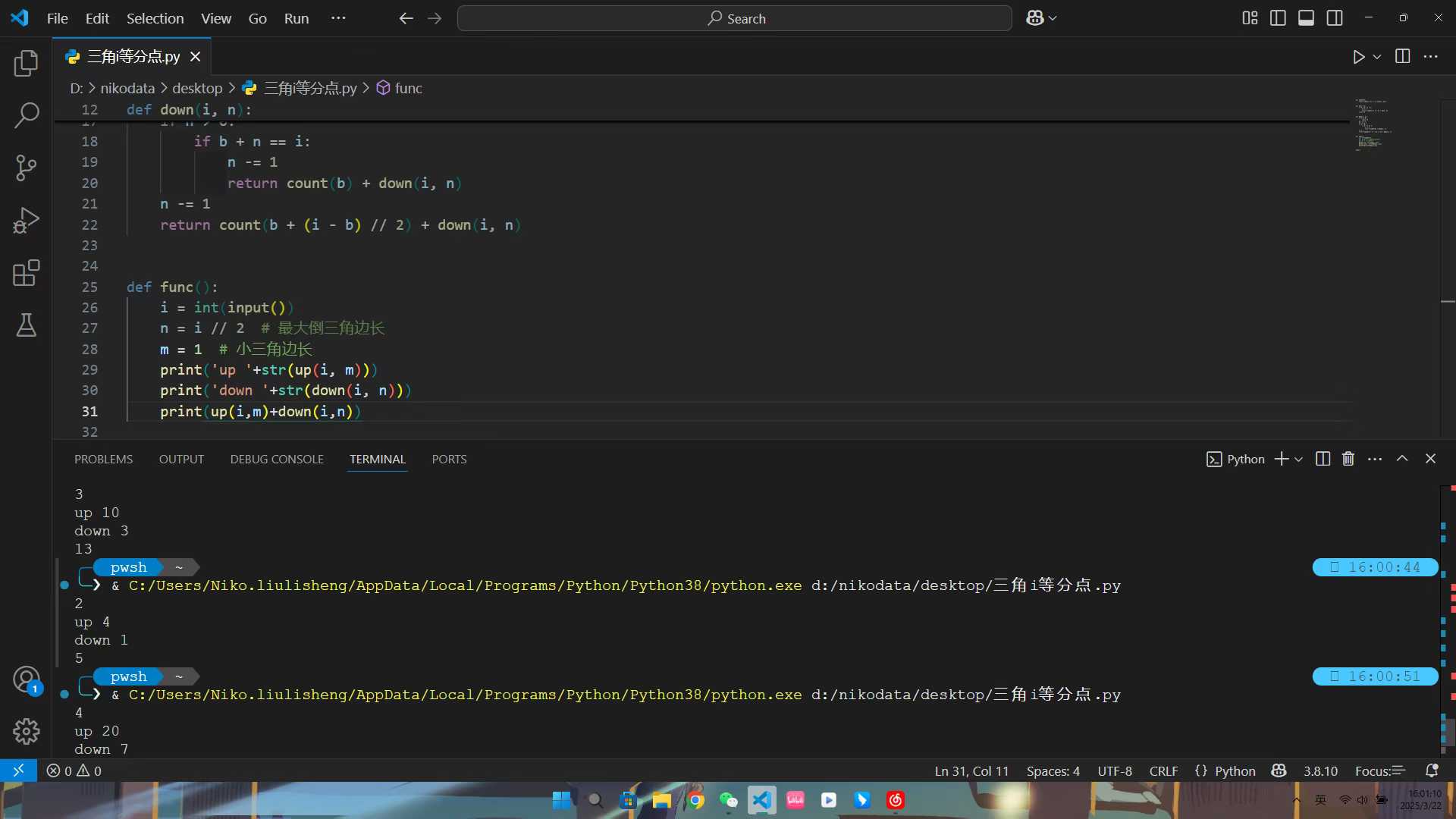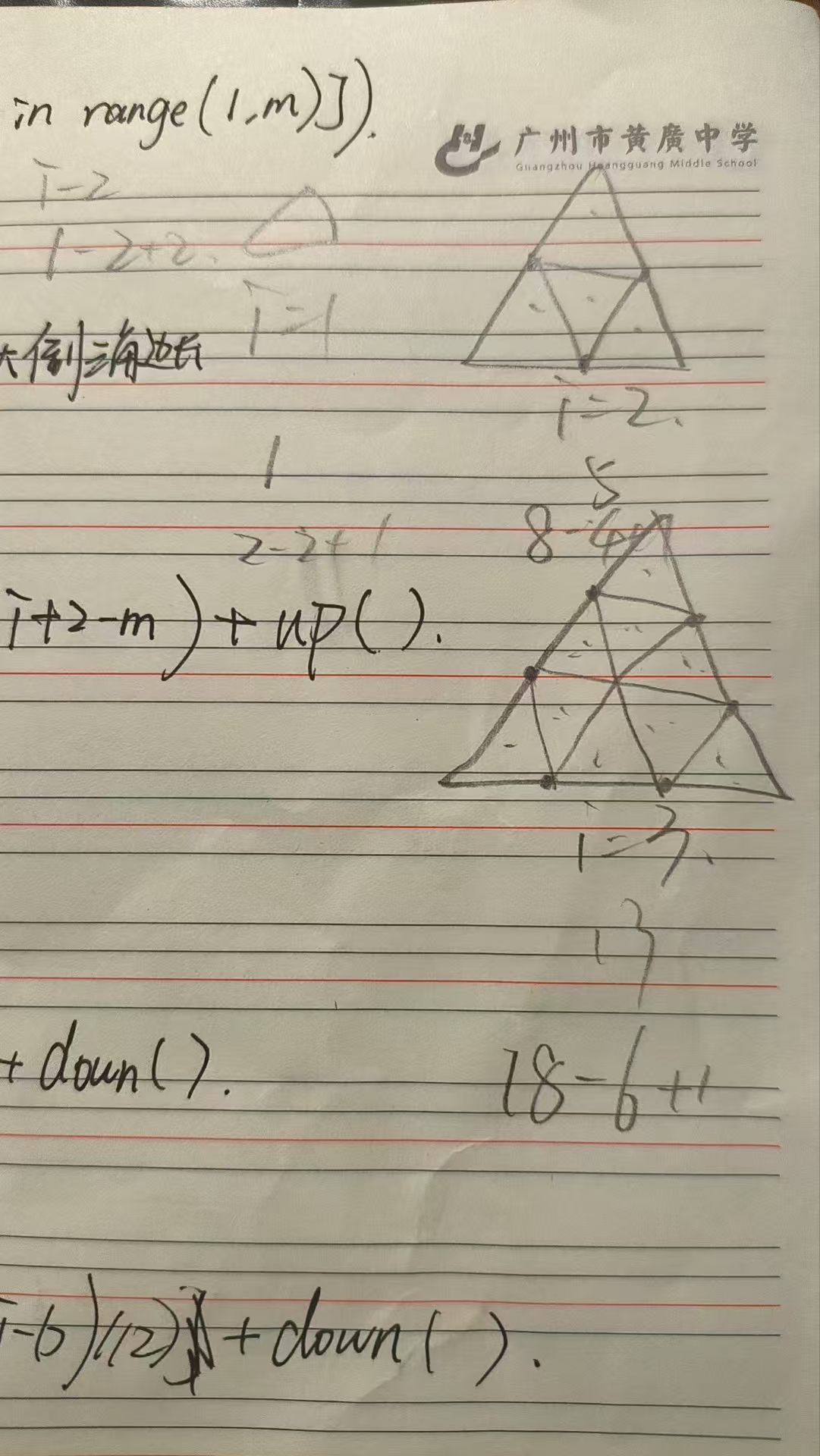 但由此,我产生了个新思路,通过分别算正立三角和倒立三角个数,相加即可。并且得通过i大小,判断其是否含有对应大小的三角形,然后一个把含有的三角用求和求出来,再递归一下算下一个,完美