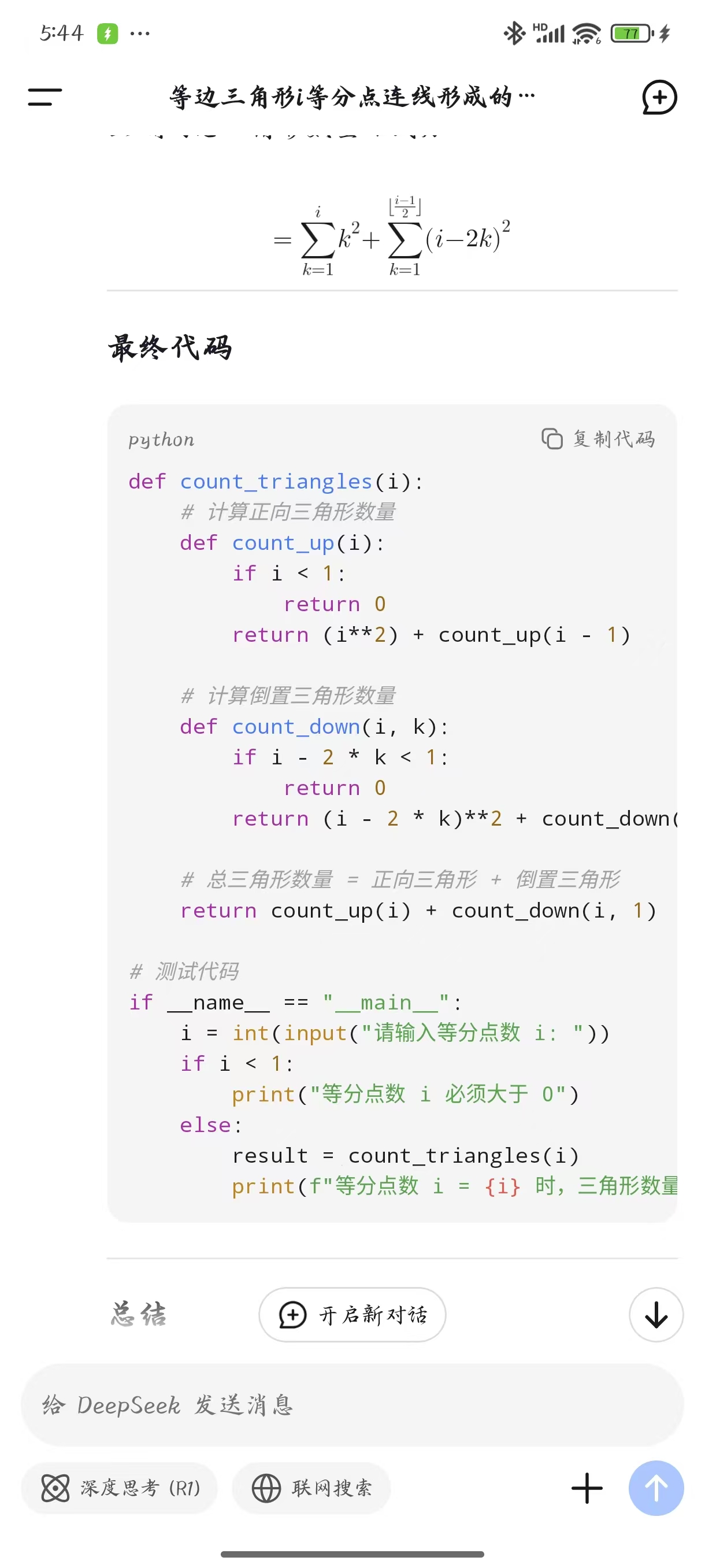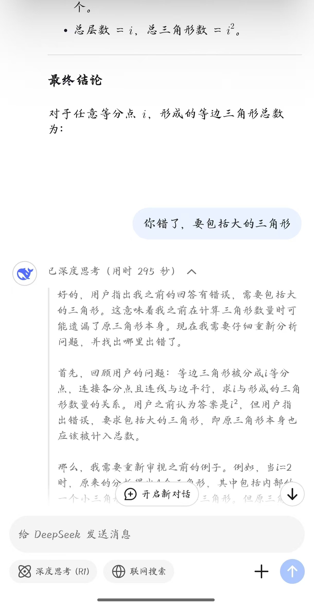 令我吃惊,第一次看到deepseek也烧脑了5分钟,不断地试错,不断地更改,最终终于得出了数学规律——